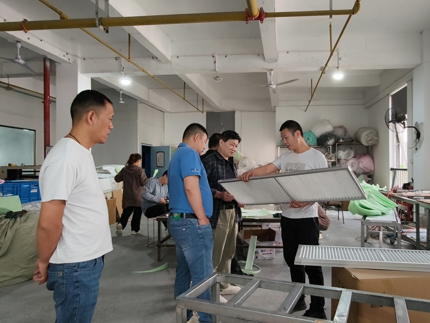 大家边走边看边交流,详细了解了企业在滤材研发、生产流程、工艺控制、质量检测等环节的具体做法与优势。车间内自动化设备有序运转,工人们专注操作,各式滤材产品规格齐全、工艺精湛,展现了企业扎实的制造实力与对品质的严格把控。向总就初、中、高效空气过滤器、各类液体过滤袋、净化环保空调等核心产品的技术特点与应用场景进行了生动讲解,让协会成员对得利滤材的产品体系和技术专业性有了更直观、深入的认识。